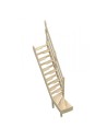 La ausencia de contrahuellas acentúa la impresión de ligereza, mientras que la haya laminada encolada garantiza solidez y durabilidad. Con su configuración de doble cuarto de vuelta, la escalera combina funcionalidad y estética, respondiendo a las necesidades del acondicionamiento.