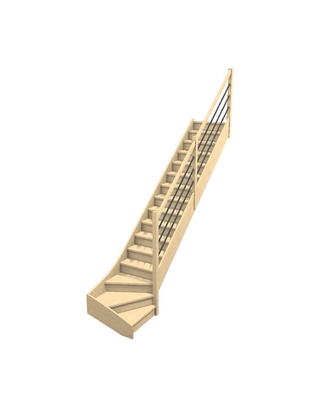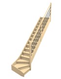 Una escalera de cuarto de vuelta inferior derecha o izquierda en madera tradicional para una subida suave.