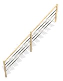Vendido con un acabado natural y una barandilla compuesta de 3 varillas metálicas negras de 18 mm, postes y pasamanos de madera.