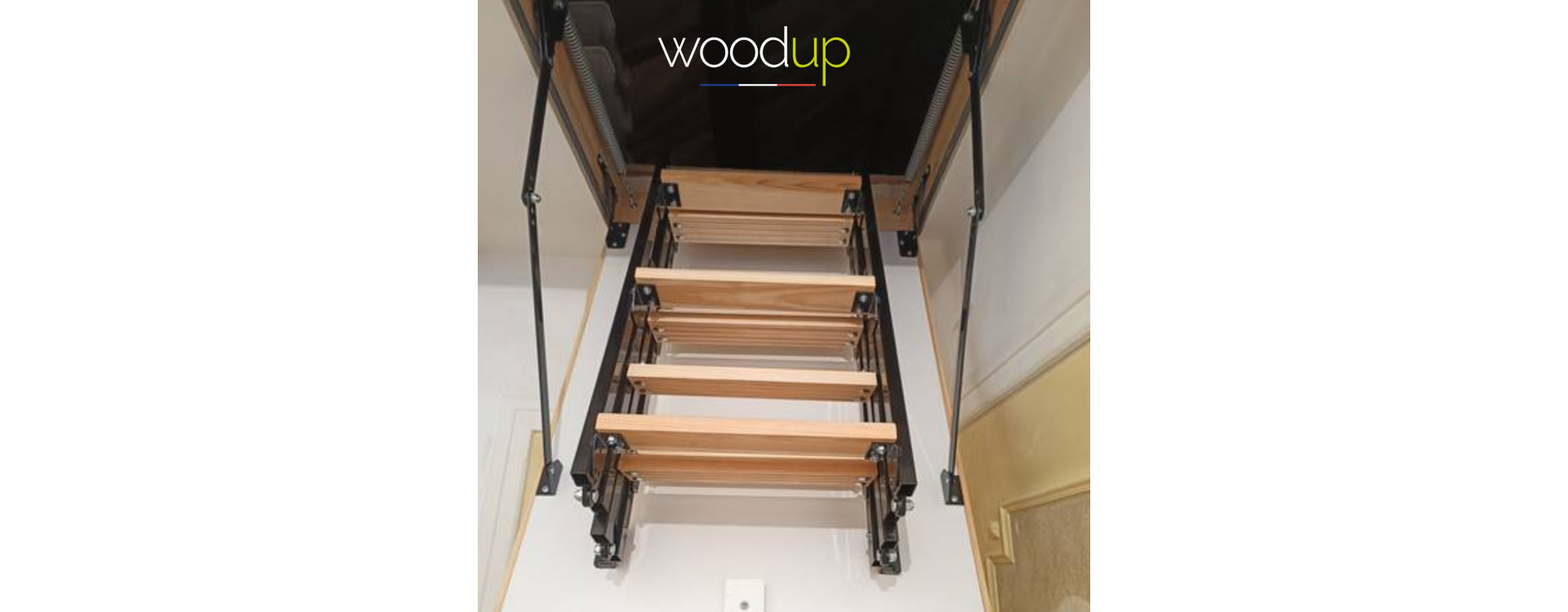 Cette réalisation met en avant un escalier escamotable en bois, parfaitement intégré au plafond pour un gain de place optimal. Facile à manipuler, il permet un accès confortable aux combles tout en restant totalement discret une fois replié.