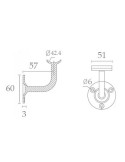 | Wall brackets | 3 grey zinc-plated metal brackets, standard spacing 80 mm, PMR-compatible (57 mm), for Ø 42.4 mm handrail, screws not included |