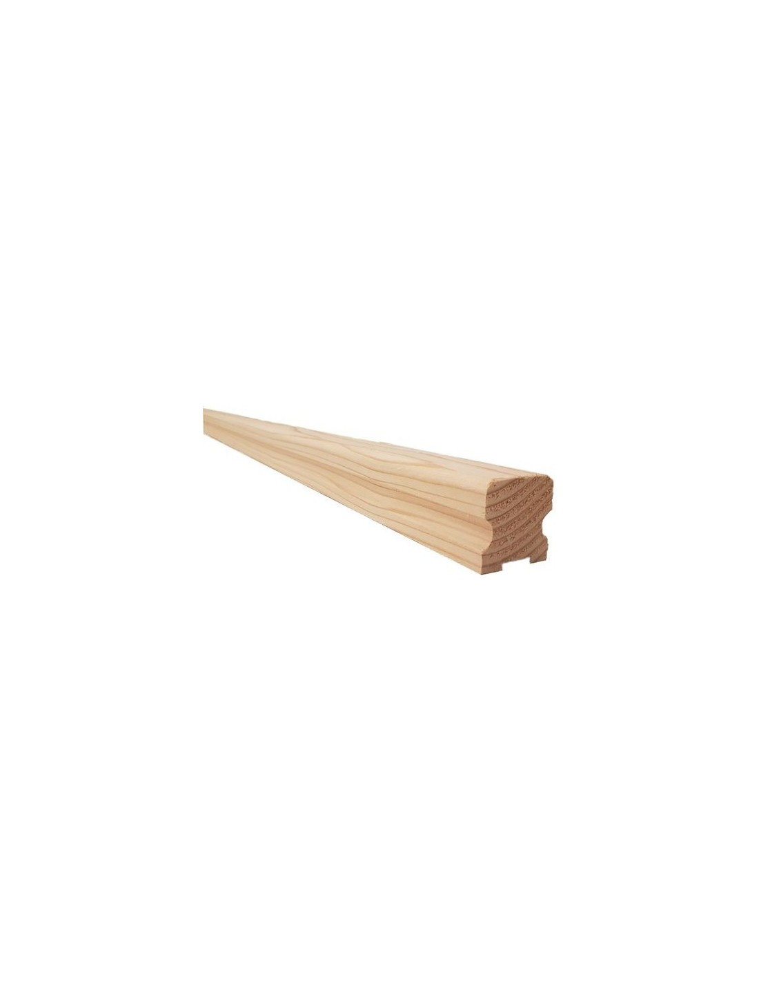 Moulded solid wood handrail — 50x50mm section, rounded profile. Pine, fir, beech or douglas fir. Raw and untreated. Compatible with 60x60mm and 70x70mm posts in the WoodUp range. Sold individually. Indoor use (beech/fir/pine) or sheltered outdoor use with treatment (douglas fir).