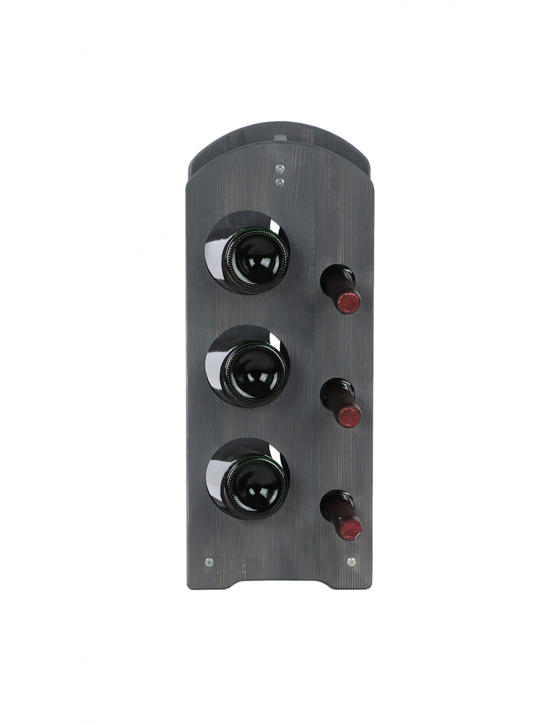 Vertical 6-bottle wine rack in grey tinted solid pine – Compact format