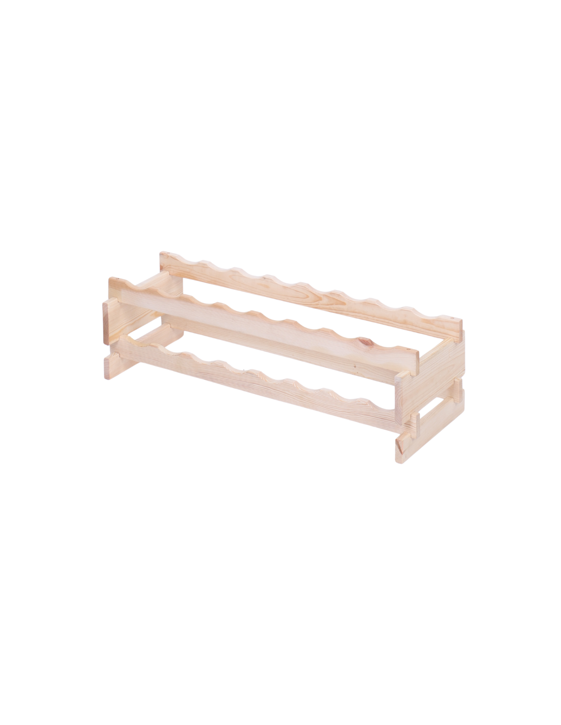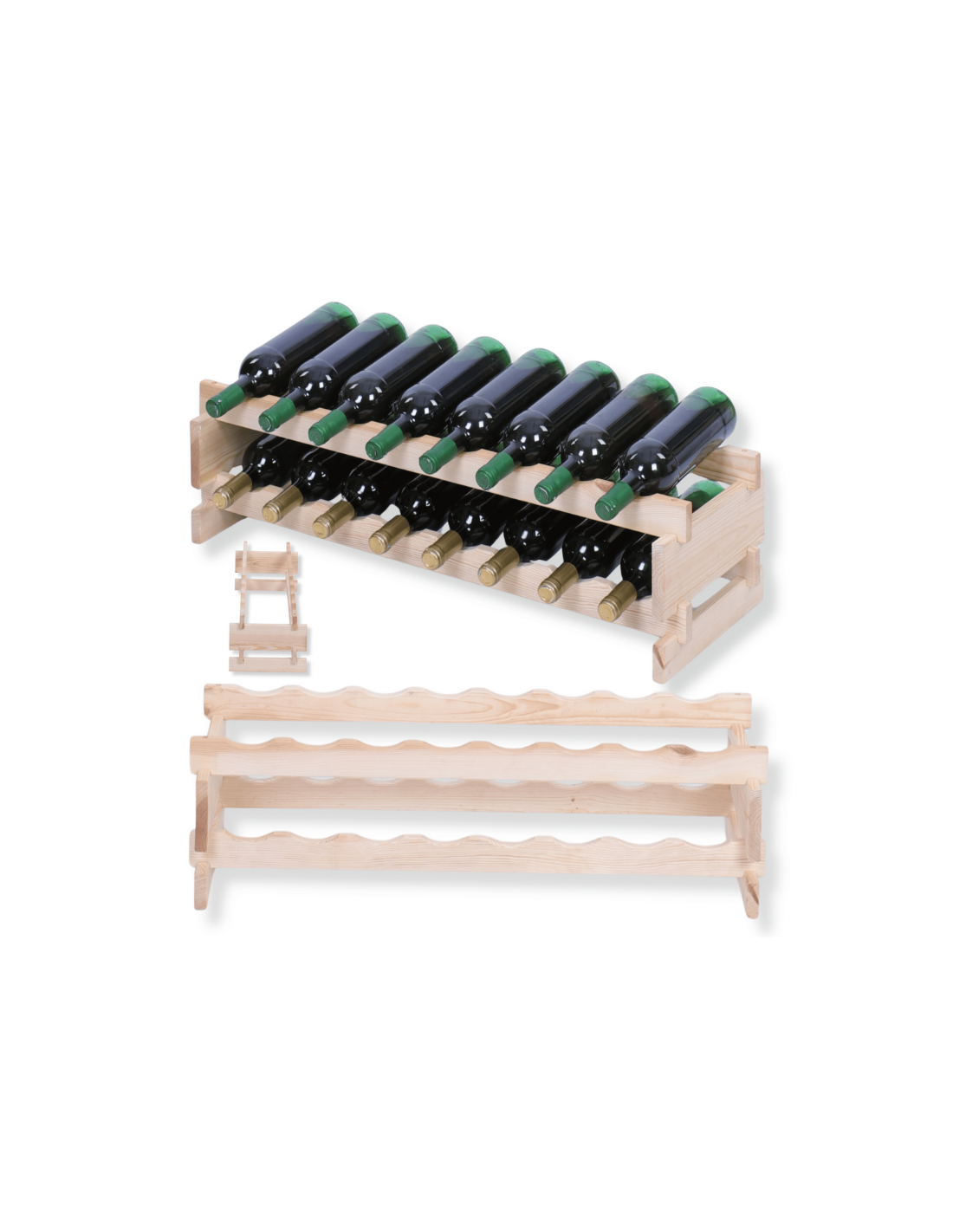 The modular wine rack with 2 rows of 8 bottles is the ideal solution for organising and displaying your bottles in a functional and aesthetic way. Crafted from natural wood, it fits perfectly into a variety of settings, whether a kitchen, a cellar or a living room. Its screw-free design allows for quick assembly and great modularity. Thanks to its well-thought-out structure, it can accommodate bottles of different sizes and shapes, in glass or plastic.