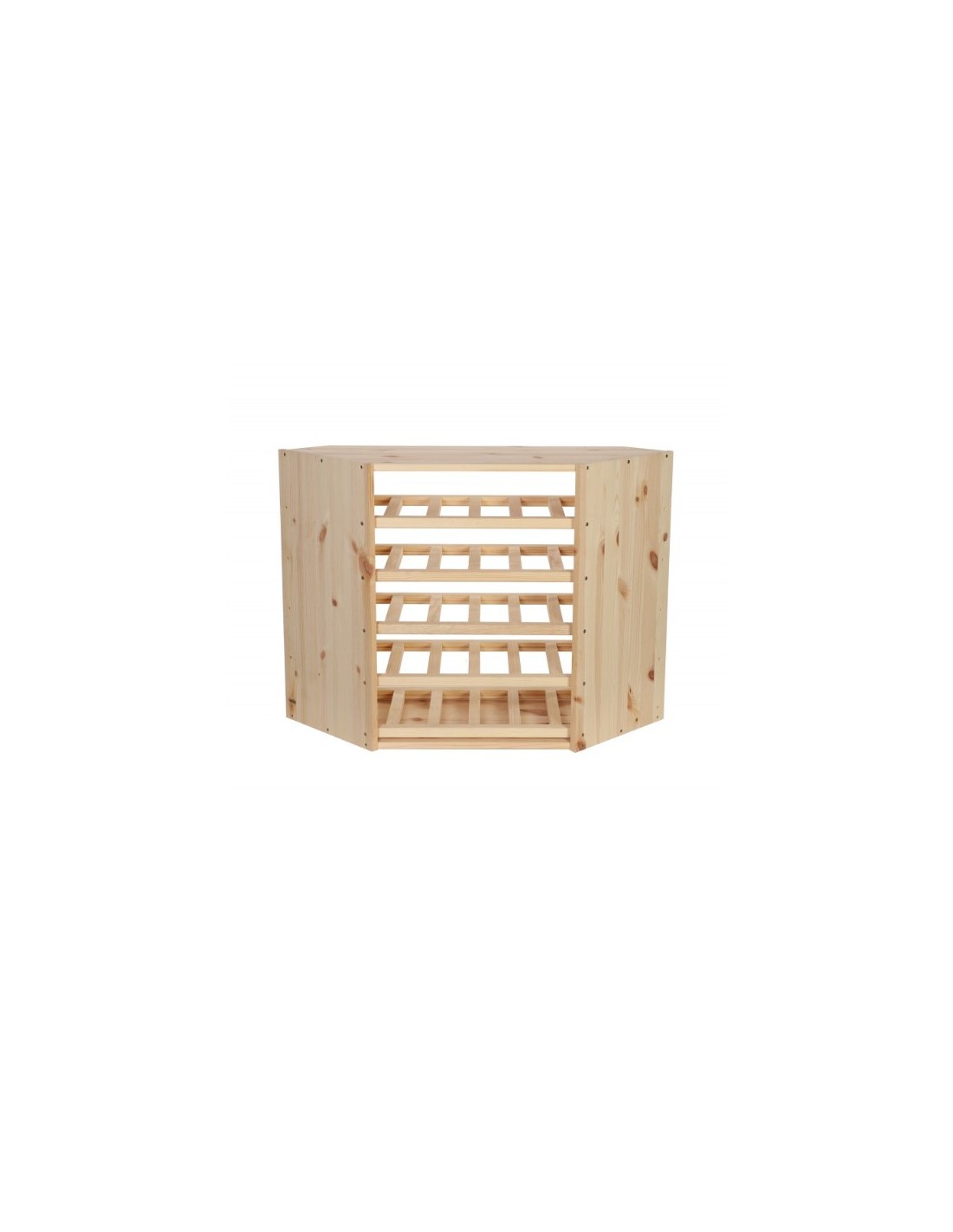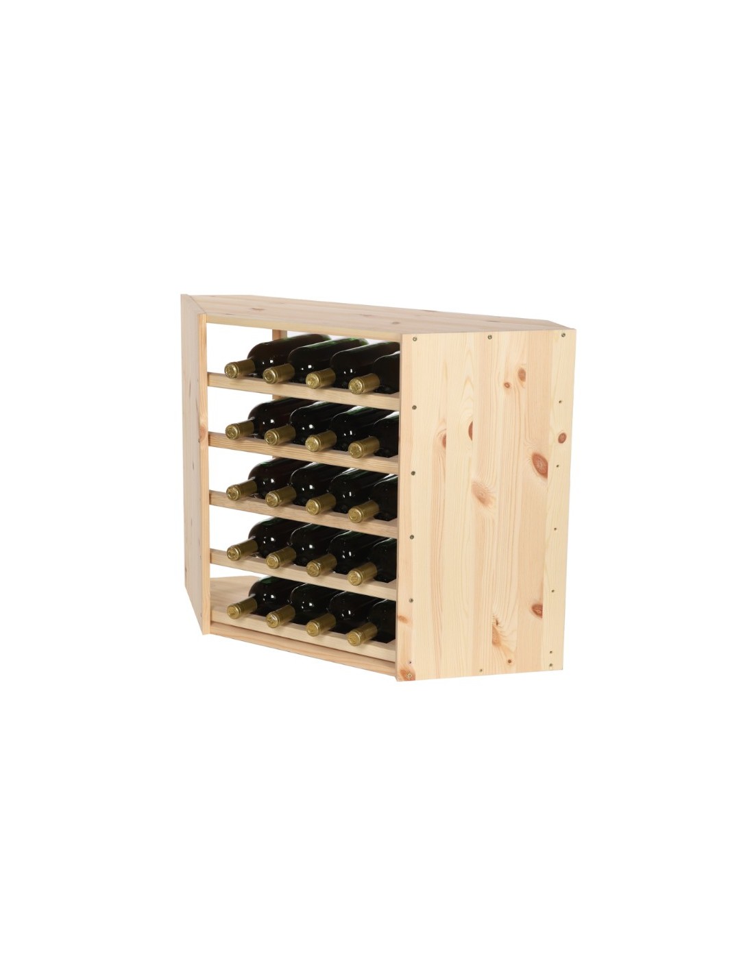 Corner wine rack for 20 bottles in raw solid pine – Horizontal storage