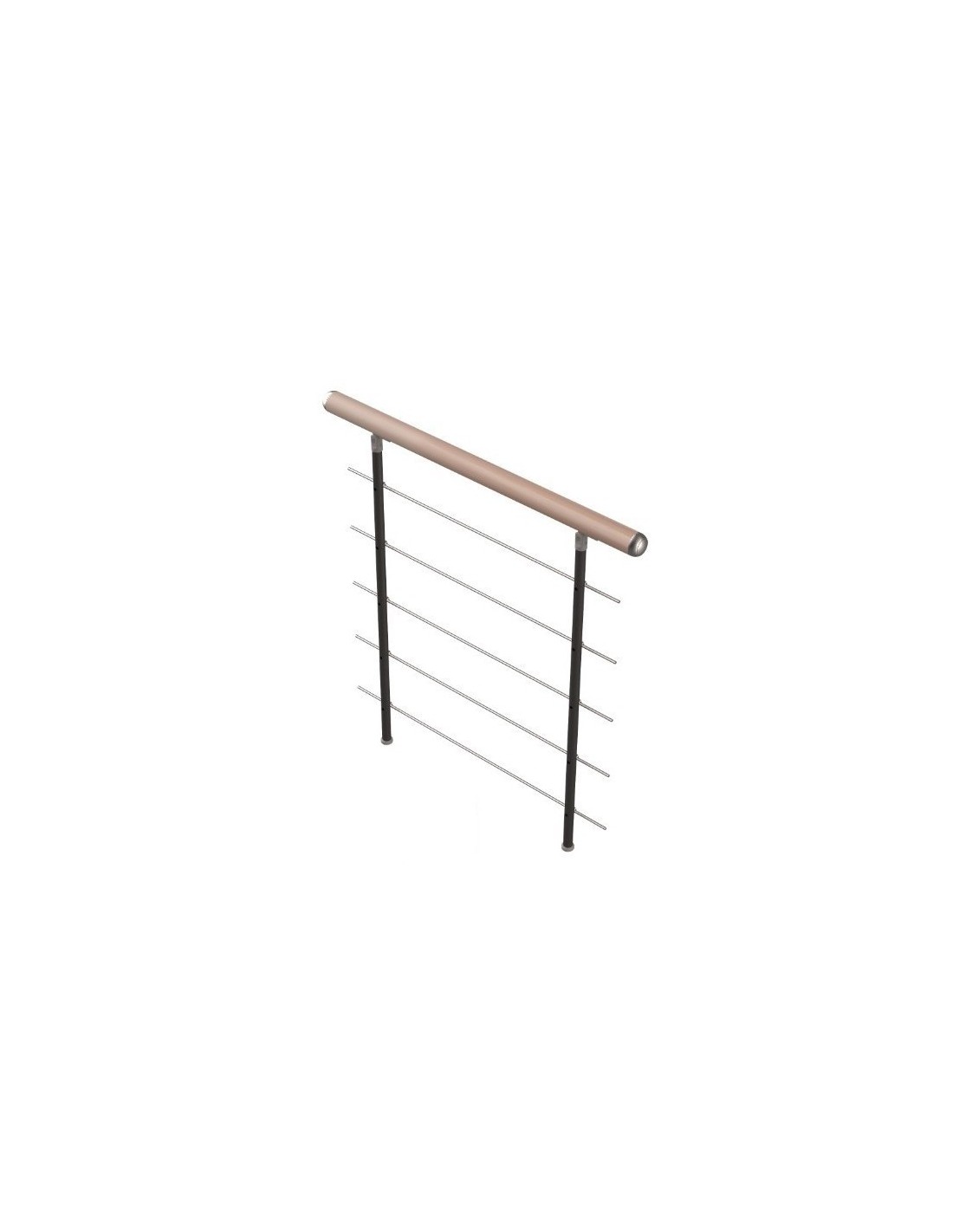 Arlberg straight balustrade 100cm — metal structure, natural beech handrail. Height 1m. Indoor use. Suitable for standard straight staircases. Raw wood to be treated. Floor fixing screws to be provided depending on substrate. Installation guide included.