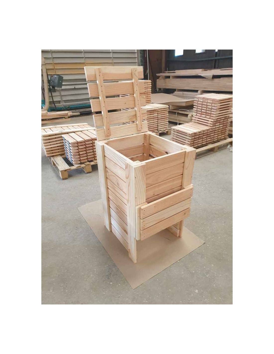 Ce composteur en kit est fabriqué en Douglas naturellement résistant. Ses dimensions extérieures sont 55×60×H 93 cm et intérieures 50×46×H 90,5 cm, pour une capacité de 200 litres. Il est équipé de 2 trappes : une trappe haute pour l'ajout des déchets et une trappe basse pour la récolte du compost mûr. Le Douglas est naturellement résistant aux champignons et insectes en classe 3 — aucun traitement chimique n'est obligatoire, ce qui le rend adapté au jardin biologique.