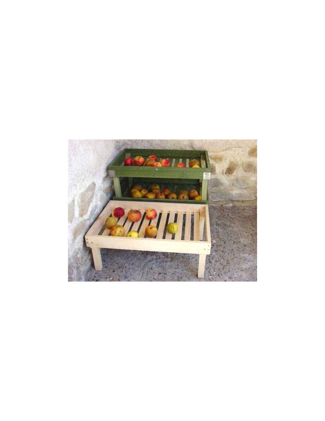 This rack in natural fir measures 58x39x21 cm and is reinforced with metal corner brackets to ensure long-term stability. Its open-slatted structure allows optimal air circulation around stored products — an essential condition for effective storage of fruits and vegetables without moisture build-up. It can be used laid flat for storage, or tilted slightly to facilitate the drying of aromatic plants, walnuts and mushrooms.
