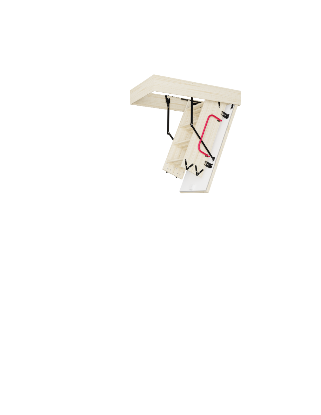 The folding ladder in 3 sections, 40 cm wide with treads 35.8 cm wide and 8 cm deep, ensures optimal comfort of use. Fitted with a safety handrail, floor protection pads and a draught seal, this loft ladder combines performance and safety. Its floor footprint is 145 cm, with a required clearance space of 205 cm. When closed, the ladder measures 58 cm in height.