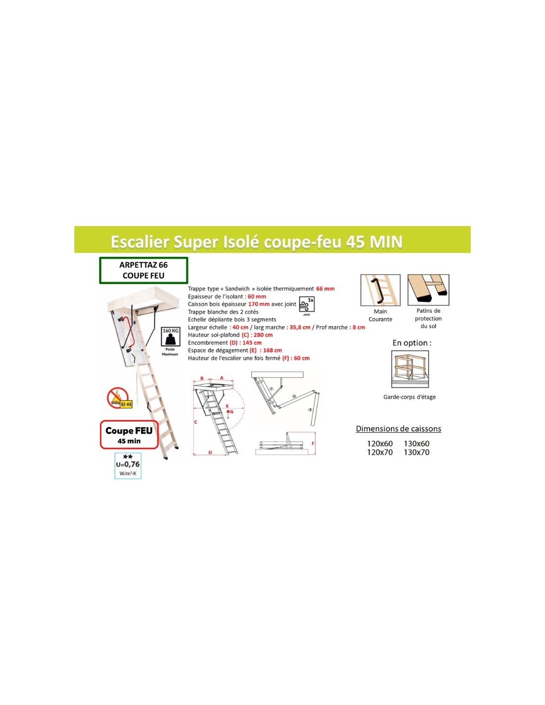 45-minute fire-resistant wooden loft ladder – Optimal 66 mm insulation