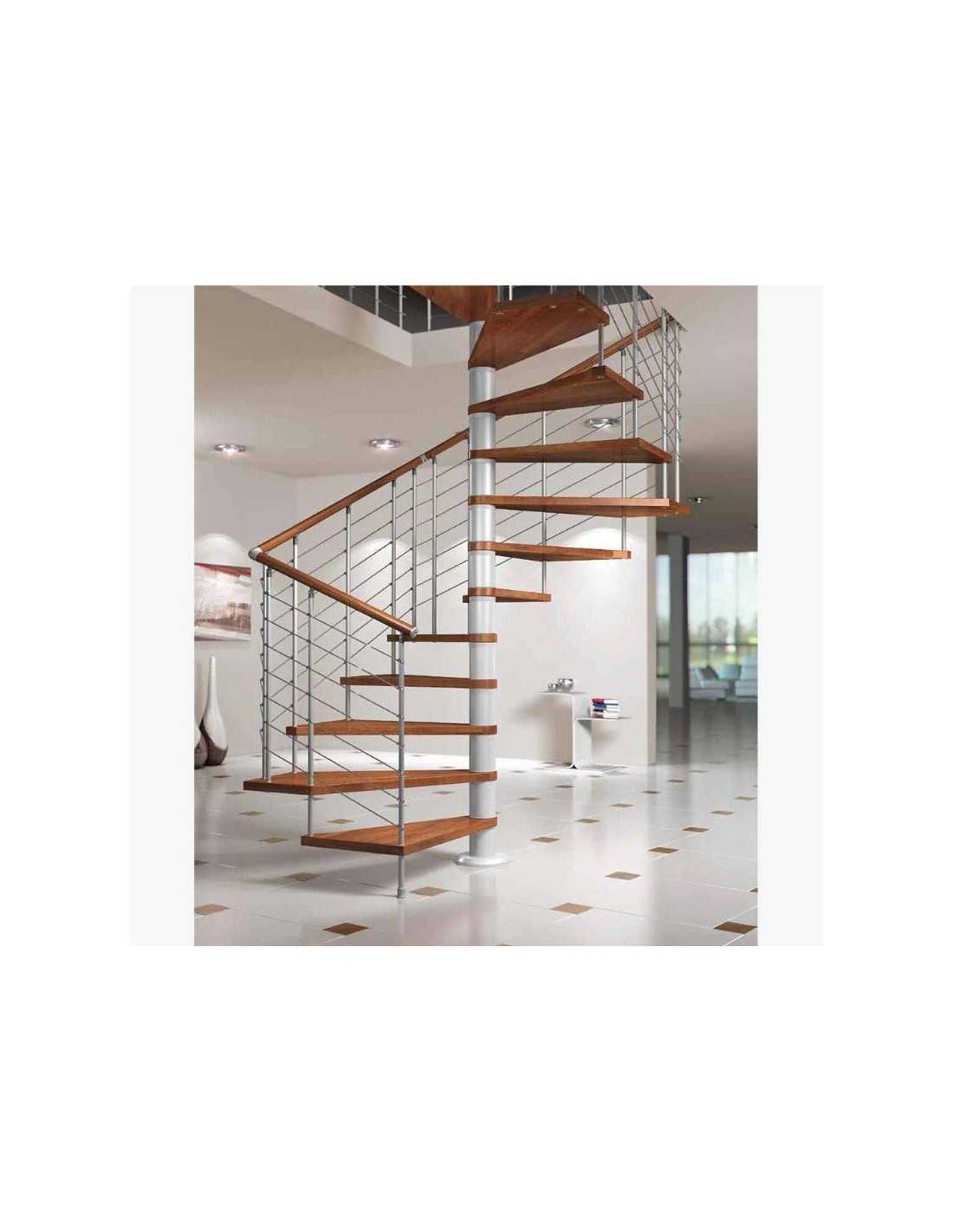 The SILVER FX spiral staircase, designed for square stairwell openings, combines modern design and quality materials. With varnished beech wood steps of 40 mm thickness, an adjustable step height between 205 mm and 240 mm, and a robust painted metal structure, it fits perfectly into contemporary spaces. Safety is enhanced thanks to a stainless steel balustrade and a wooden handrail. Adjustable to floor-to-floor height, this staircase offers an aesthetic and functional solution for your installations.