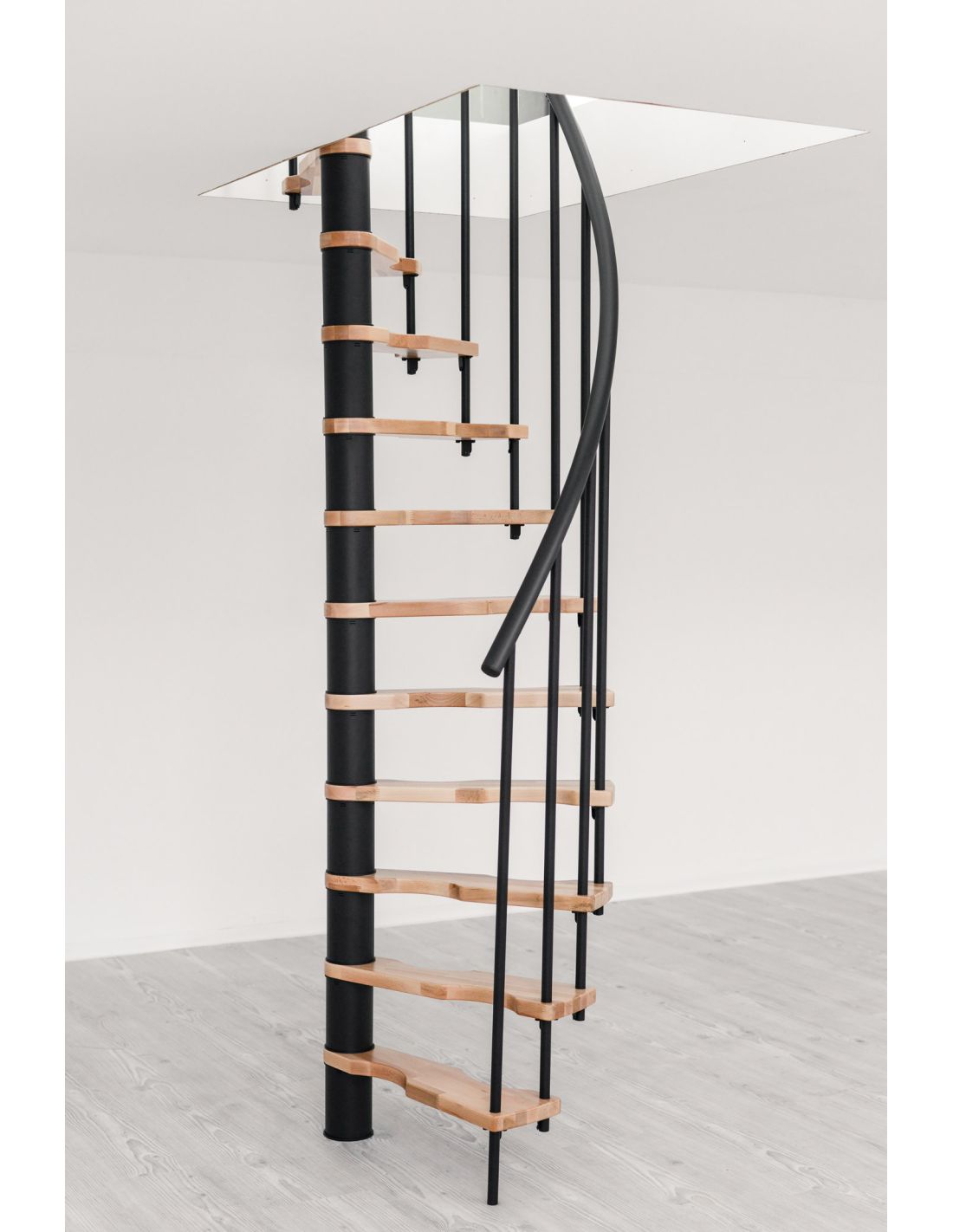 Characteristics: is a spiral staircase designed for indoor use when the available space requires a compact solution. Its spiral configuration allows two levels to be connected while minimising the footprint, making it suitable for both renovation projects and new builds. Dimensions, metal finish and certain composition elements vary depending on the selected variant.
