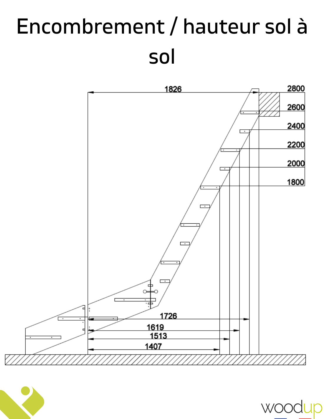 The ADRET fir staircase is designed to suit your space thanks to its optimal dimensions: a maximum floor-to-floor height of 280 cm, a width of 67 cm, and a floor footprint of 183 cm. To view all dimensions and technical details, go to the "Product details" section.