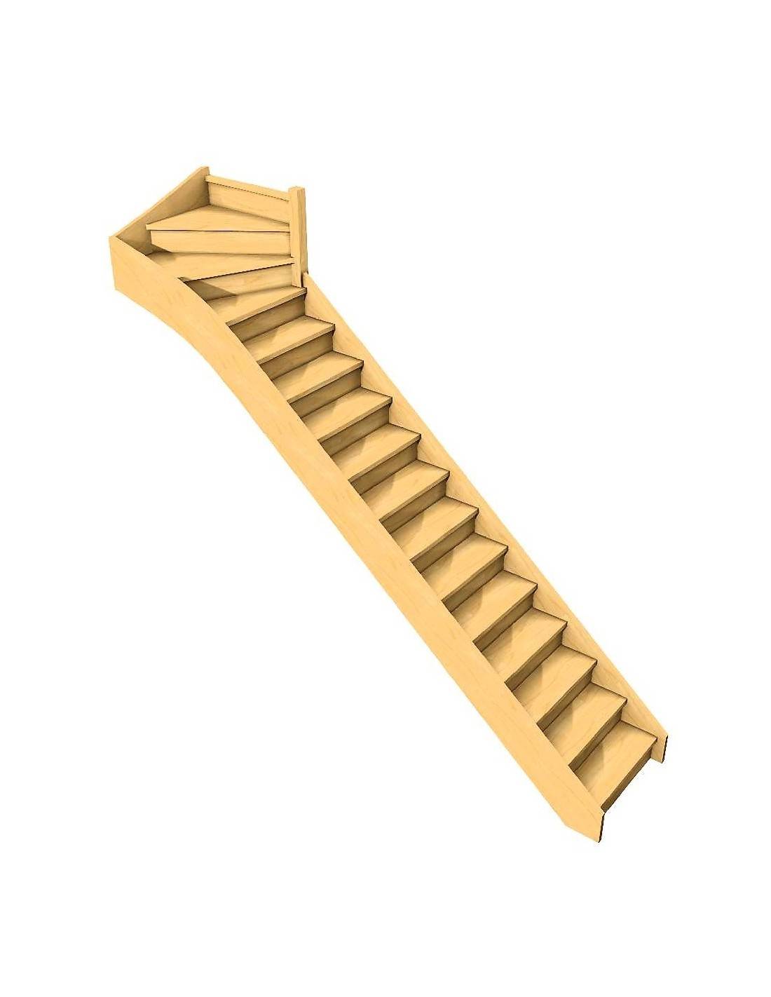 Top quarter-turn staircase in fir, left or right-handed. Supplied as a kit