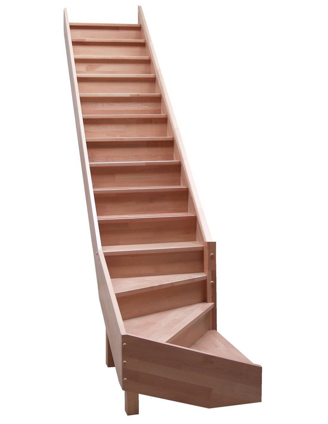 Quarter-turn bottom staircase in glued laminated beech with or without risers