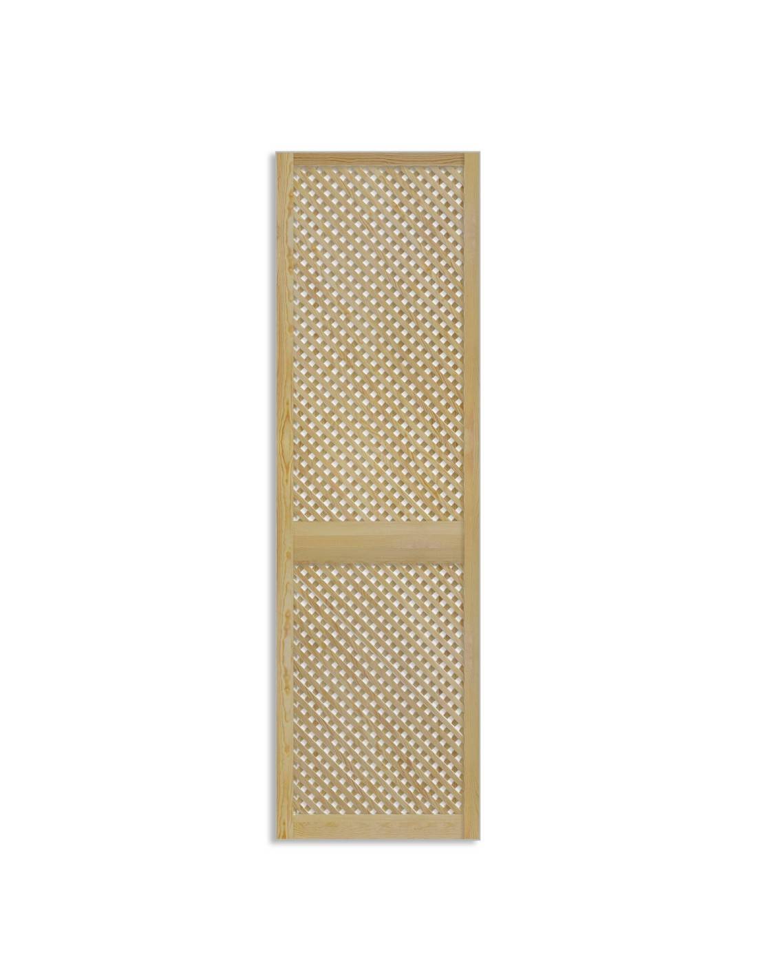 Natural wood cross-panel wardrobe door leaf, 21 mm thickness, 9 dimensions from 39.5×29.4 cm to 201.3×59.4 cm. Open cross-panel pattern for ventilation and filtered light — suitable for TV units, bookshelves and wardrobes. Compatible with aluminium sliding rail Aluminium sliding system or standard 21 mm hinges. Raw finish to be painted or varnished. Non-trimmable. Sold individually without hardware. Indoor use only.