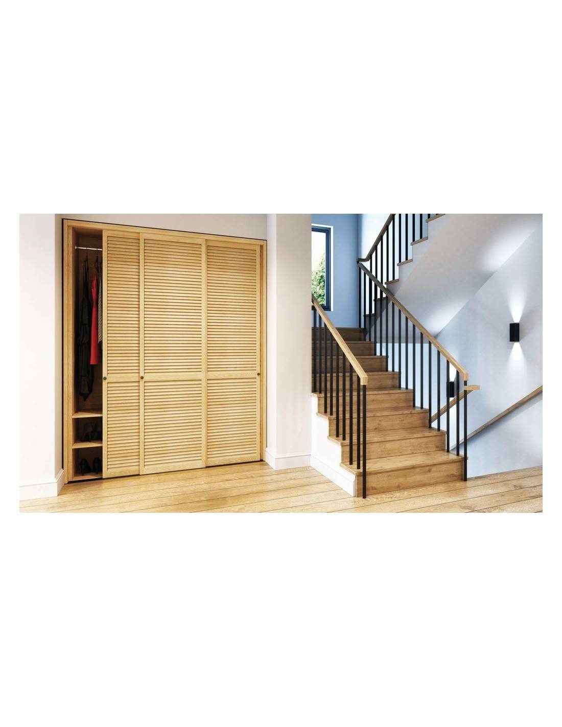 This solid natural pine louvred wardrobe door leaf is designed for spaces requiring continuous passive ventilation: wardrobes, larders, utility rooms, ventilated storage. Its open slats allow air circulation without a technical grille. The thickness is 21 mm. It is available in 8 formats covering heights from 690 to 2422 mm and widths from 294 to 594 mm.