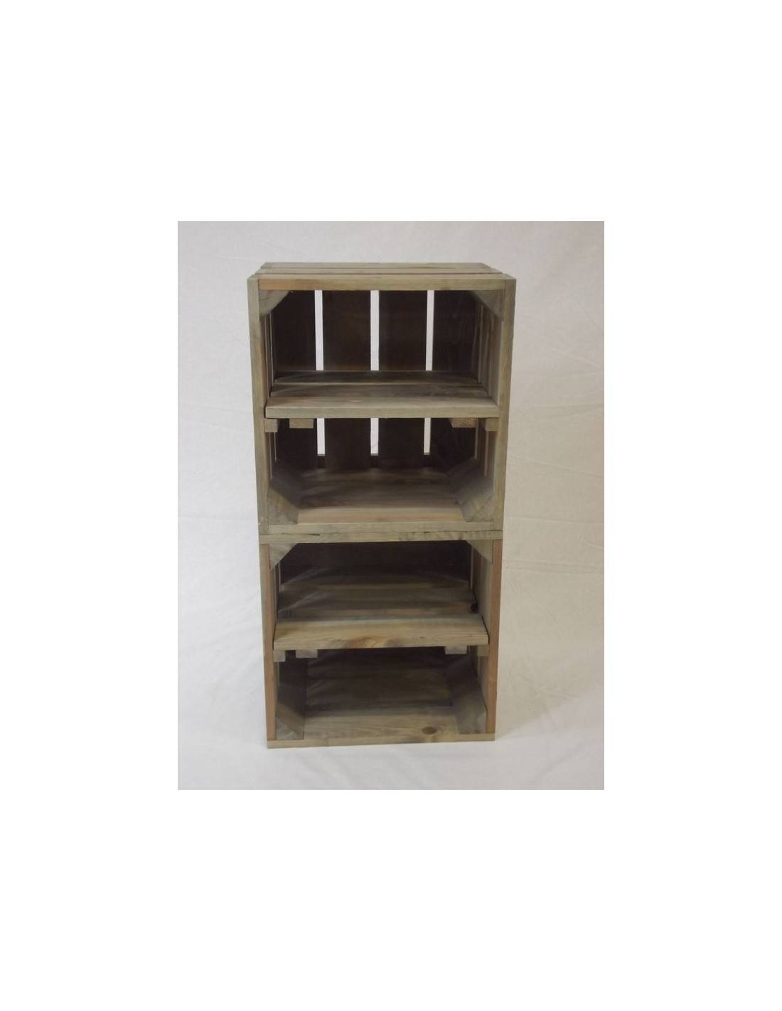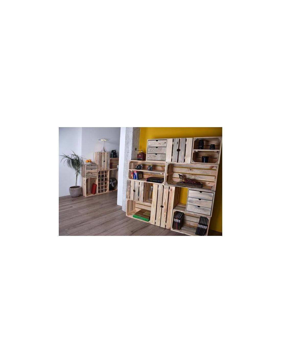 The Woodbox shelf is a wooden accessory designed to transform a Woodbox crate into an open shelving unit. It fits directly inside the crate without complex screwing, adding one or more storage levels. Shelves are available in three sizes (small, medium, large) and two finishes (raw or aged wood), for perfect compatibility with the entire Woodbox range.