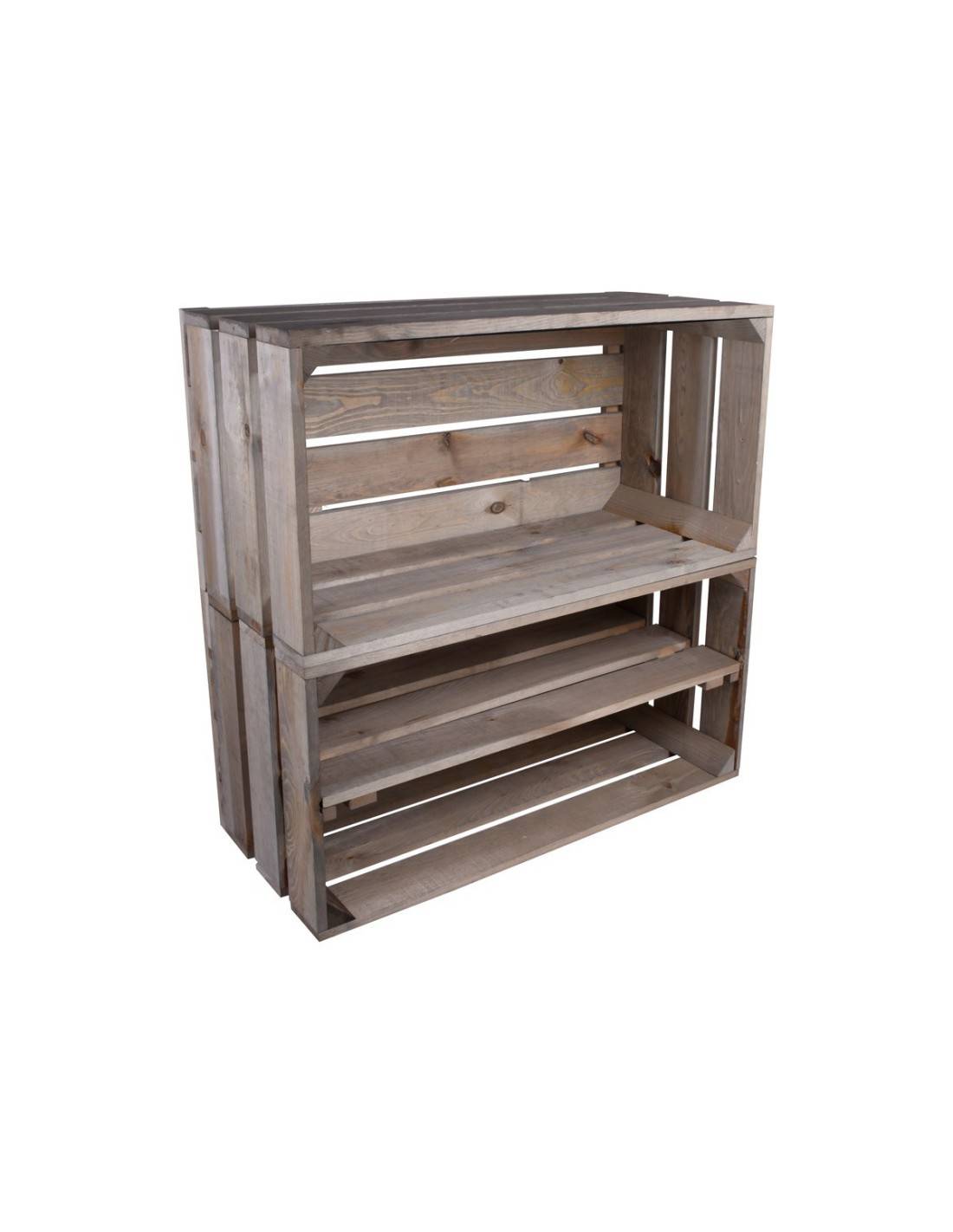 The Woodbox shelf is a wooden accessory designed to transform a Woodbox crate into an open shelving unit. It fits directly inside the crate without complex screwing, adding one or more storage levels. Shelves are available in three sizes (small, medium, large) and two finishes (raw or aged wood), for perfect compatibility with the entire Woodbox range.