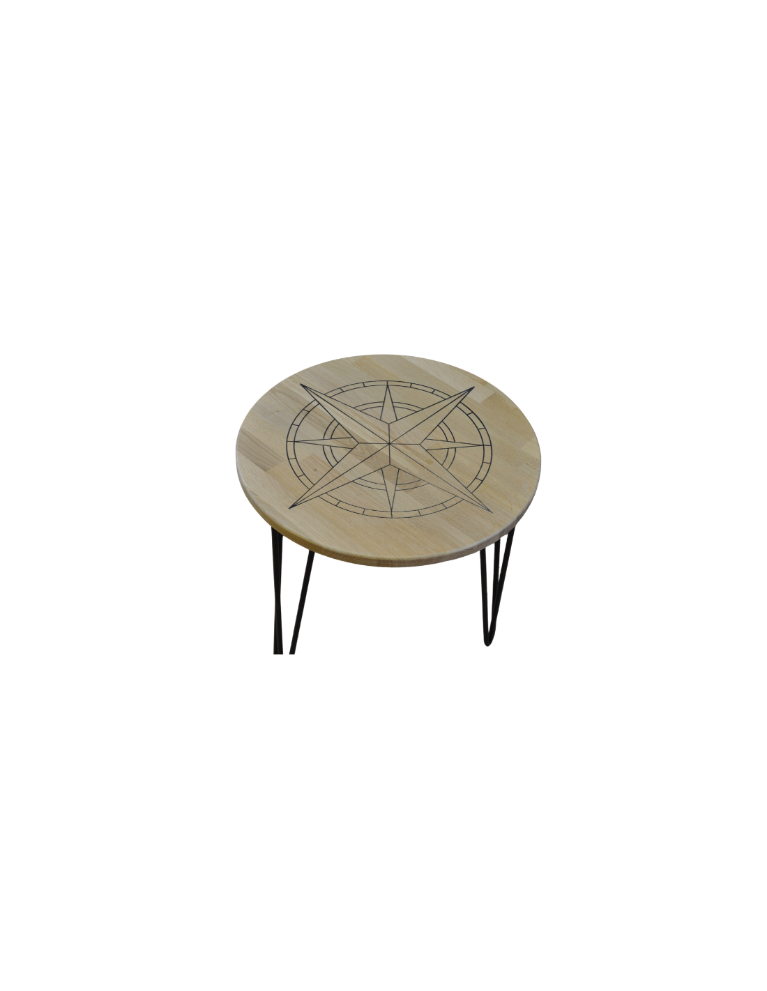 Discover our round wooden coffee table with three hairpin legs in black metal, a piece that combines modern elegance and functionality. Offering customisable dimensions and available with legs of 20 cm or 42 cm in height, this table adapts perfectly to your space and needs. The superior quality wooden top and the matt black metal finish ensure both durability and style. Add a touch of sophistication to your living room with this unique coffee table, designed to harmonise with any interior décor.
