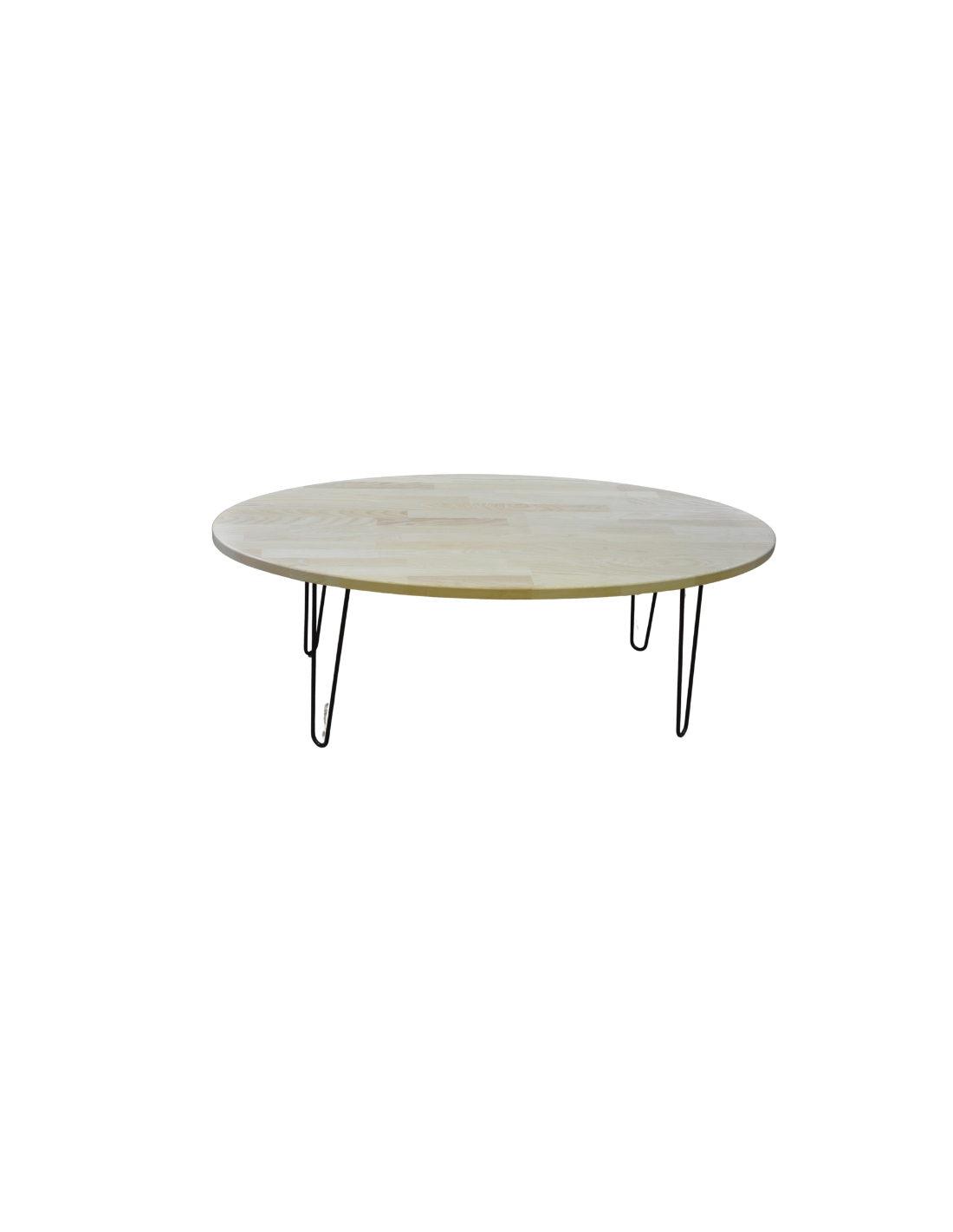 Our coffee table redefines conviviality with its unique oval shape, designed to integrate harmoniously into any living space. 4 black metal hairpin legs, available in heights of 20 or 43 cm
