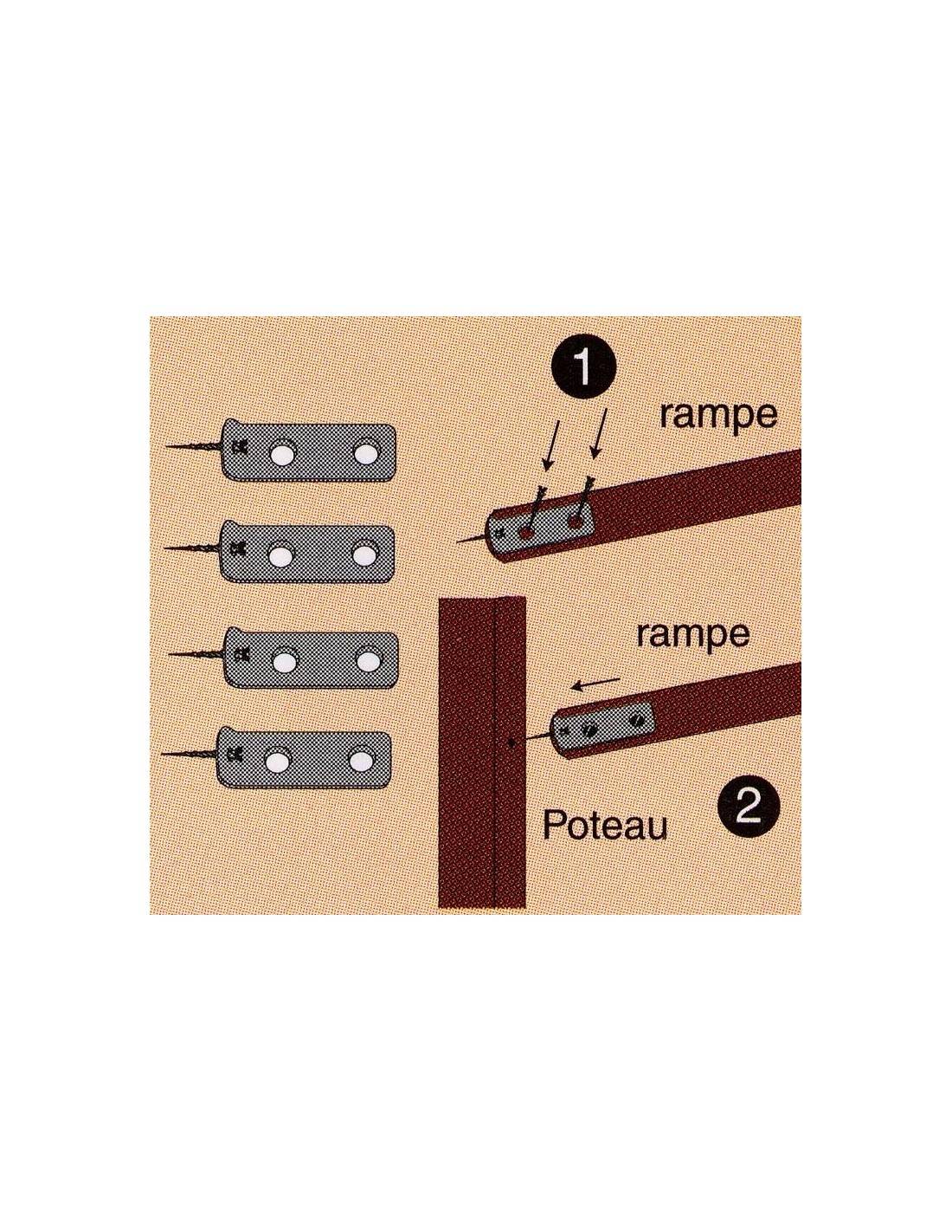 Il fissaggio corrimano-palo AX040 è ideale per mettere in sicurezza e stabilizzare i vostri parapetti. Questo kit comprende 4 fissaggi e 8 viti in acciaio zincato, garantendo un'installazione facile e duratura. Offre una qualità superiore e una lunga durata.
