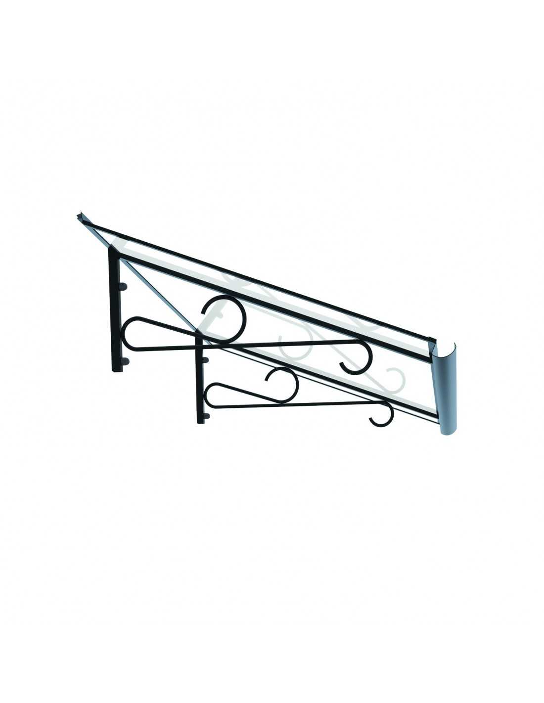 Approfittate di una soluzione di ombreggiatura efficace ed estetica con questa tettoia in metallo di stile retrò, dotata di una lastra di policarbonato trasparente. Ideale per riparare la vostra porta d'ingresso, questa tettoia assicura una protezione dalle intemperie lasciando al contempo passare la luce, offrendo così un ingresso accogliente e luminoso.