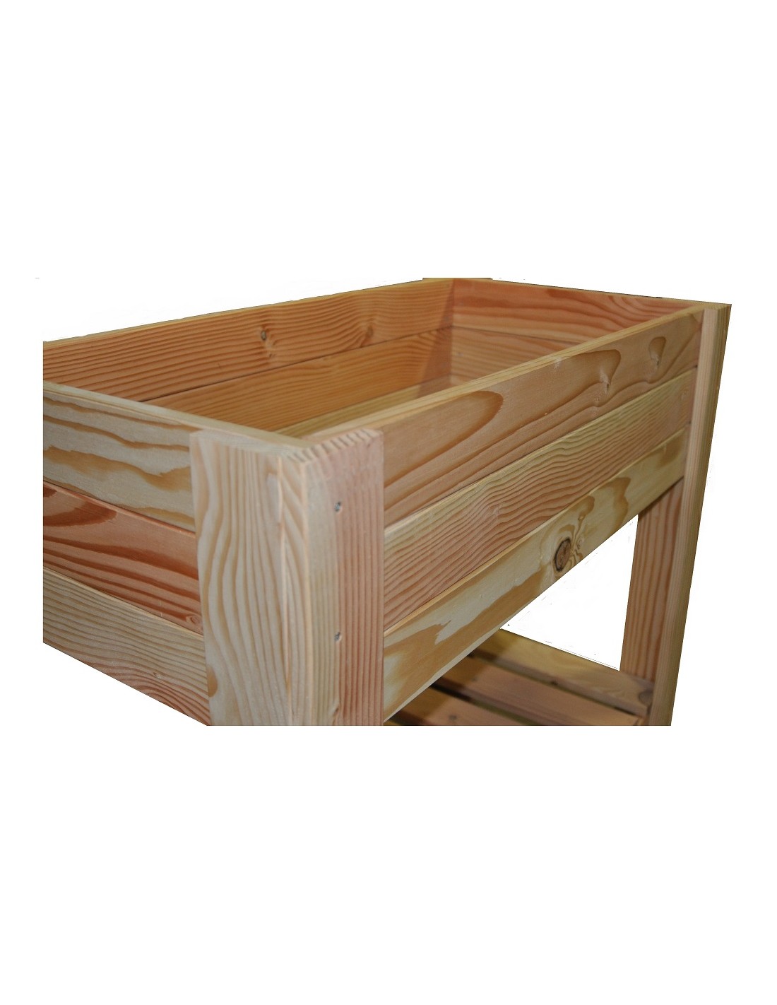 Questa fioriera orto su piedi è realizzata in Douglas Massiccio Centrale non trattato, sezione 90×21 mm. Le sue dimensioni esterne sono 104×54×H 90 cm con un volume interno di 96 litri (dimensioni interne: 95×46×H 22 cm). L'altezza di lavoro a 90 cm consente di giardinare in piedi senza piegarsi, eliminando così i problemi lombari legati alla coltivazione a terra. Viene consegnata già montata, pronta all'uso fin dalla ricezione senza assemblaggio.
