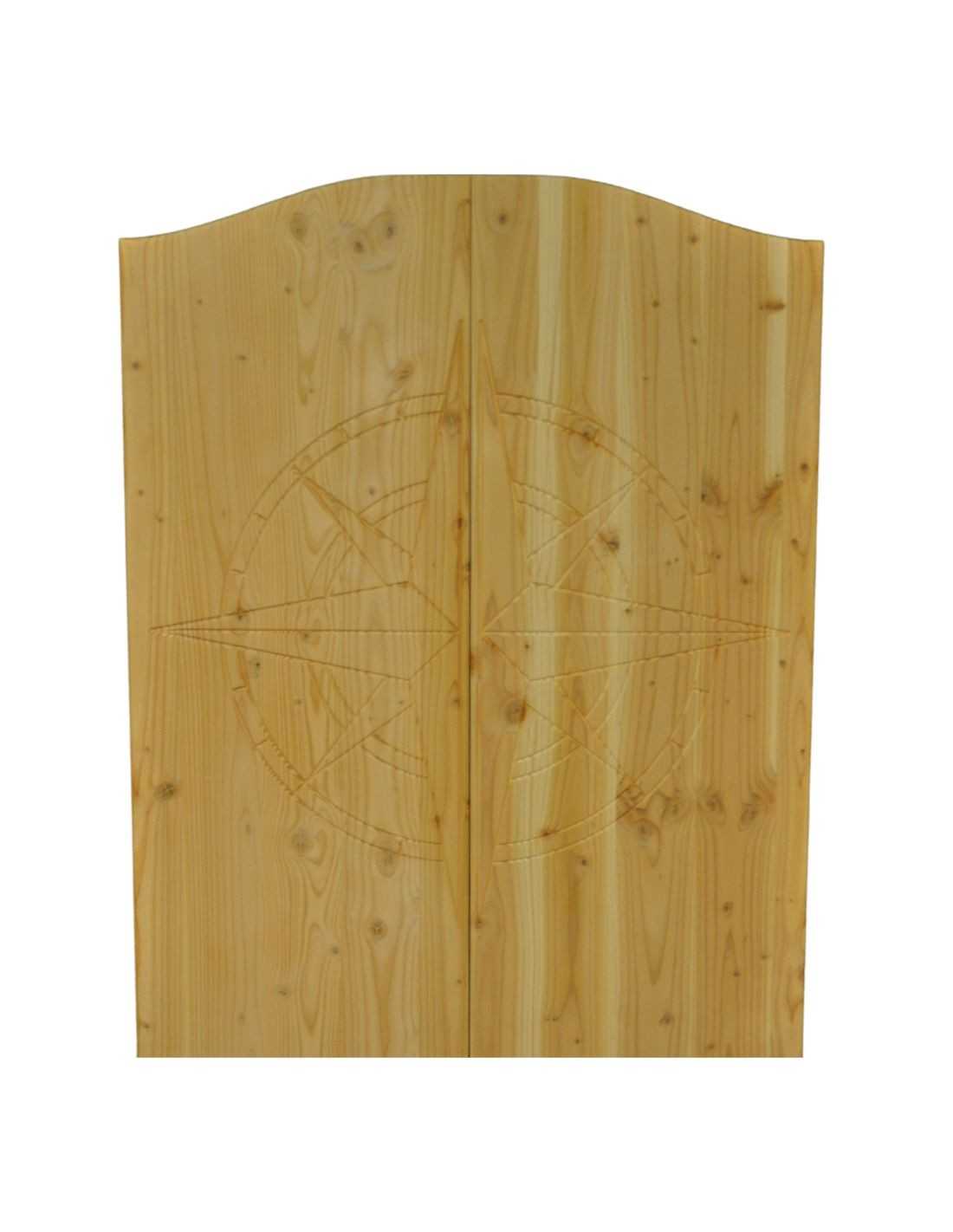 Porta western su misura in legno, dimensioni personalizzabili, 1 o 2 ante. 6 essenze a scelta: 3 strati Douglas, abete, 3 strati faggio, abete rosso effetto legno antico, Valchromat nero o grigio chiaro. Motivo personalizzabile, inciso su entrambi i lati. Tempo di produzione 6-8 settimane — nessuna cancellazione possibile dopo l'avvio della produzione. Perni e ferramenta venduti separatamente. Uso esclusivamente interno.
