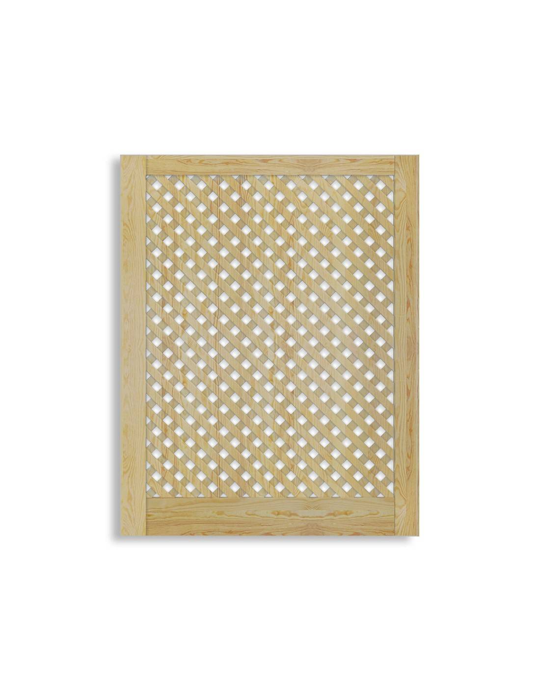 Anta per armadio a reticolo incrociato in legno naturale, spessore 21 mm, 9 dimensioni da 39,5×29,4 cm a 201,3×59,4 cm. Motivo a griglia traforata per ventilazione e luce filtrata — adatto a mobili TV, librerie e armadi. Compatibile con binario scorrevole in alluminio Sistema scorrevole in alluminio o cerniere classiche 21 mm. Finitura grezza da dipingere o verniciare. Non ritagliabile. Venduto singolarmente senza ferramenta. Solo per uso interno.