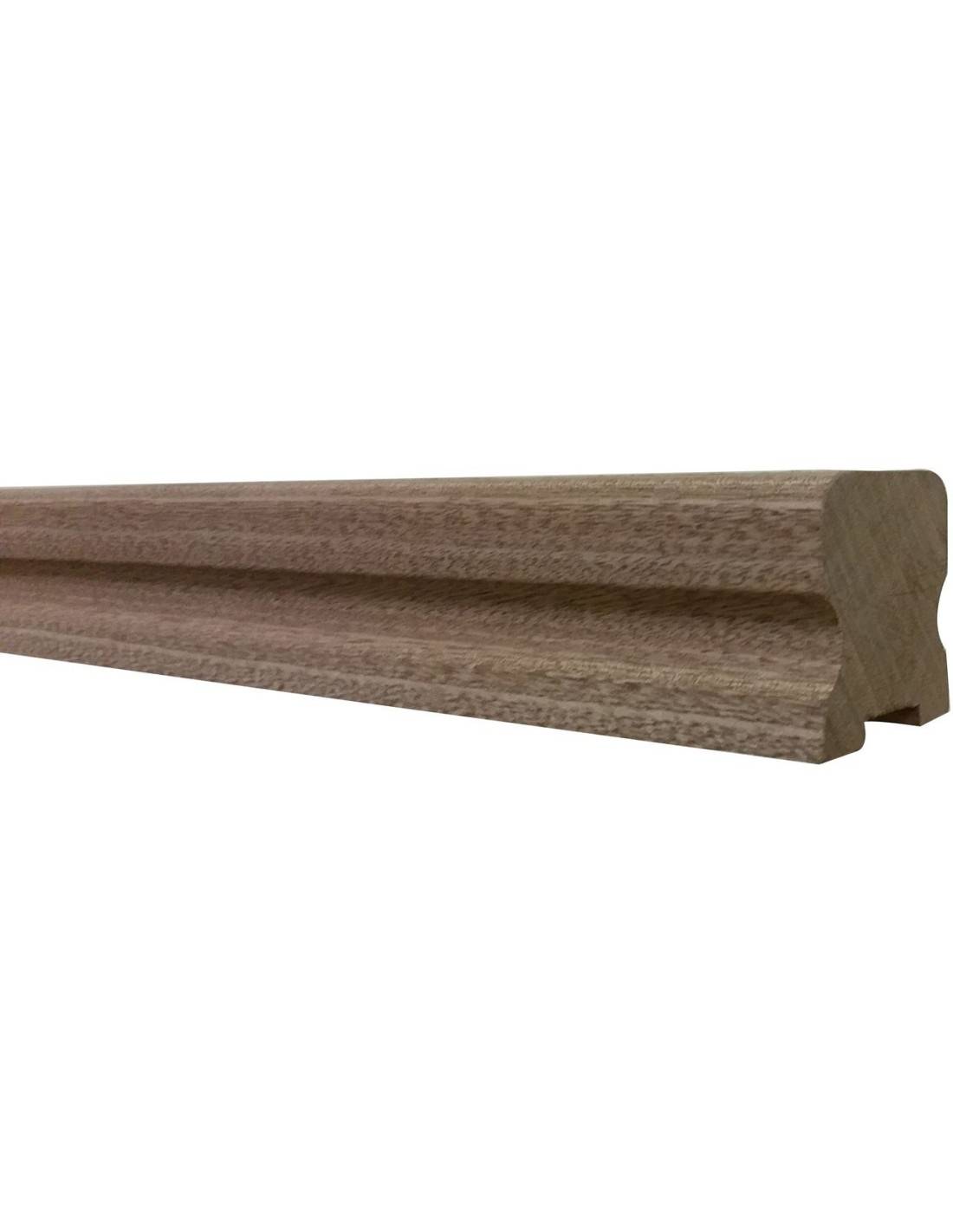 Corrimano sagomato in legno esotico Sipo – con scanalatura per supporti