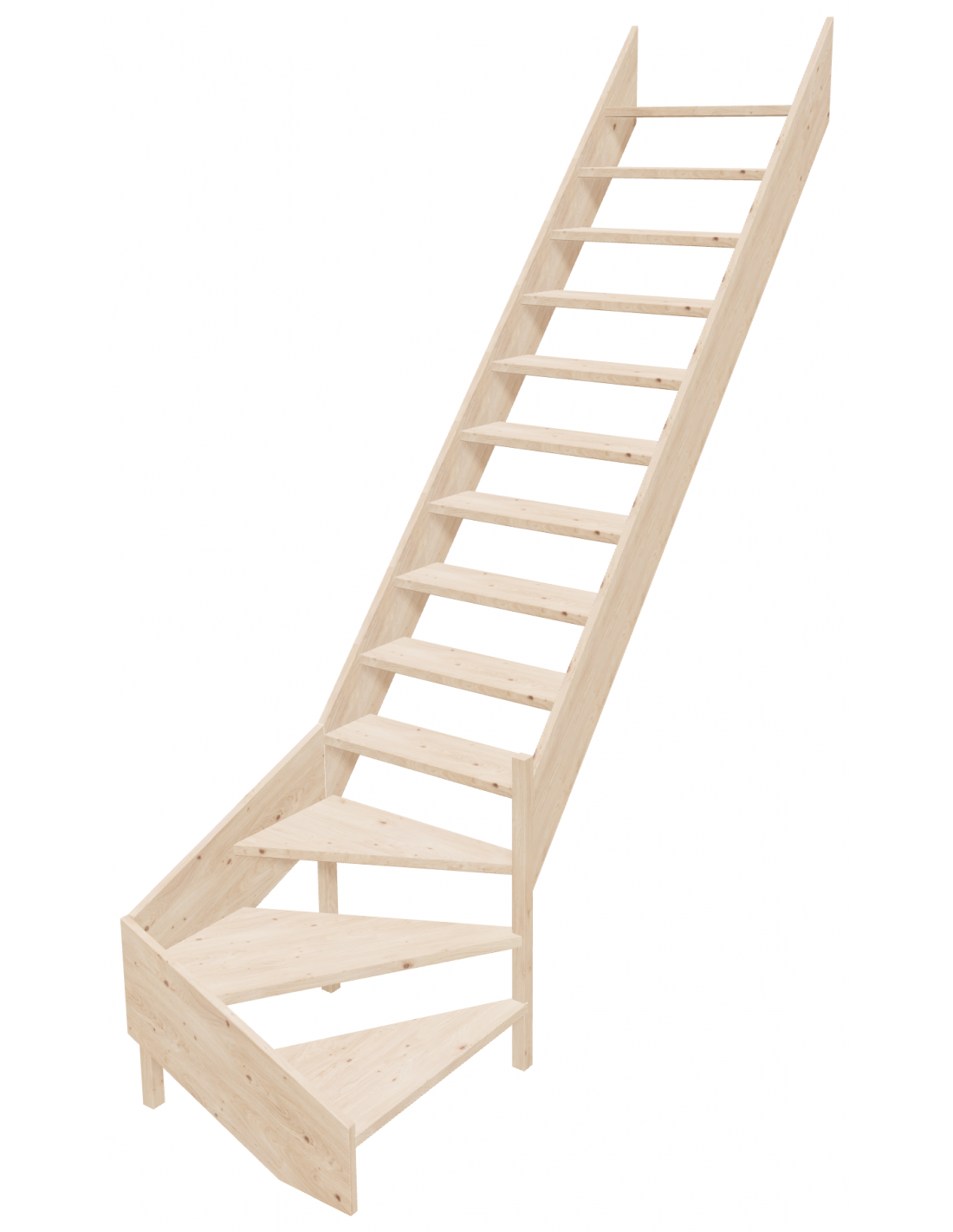 Scegliete il modello con quarto di giro a destra o a sinistra in base all'orientamento del vano scala. La ringhiera può essere inclusa a seconda della versione selezionata.