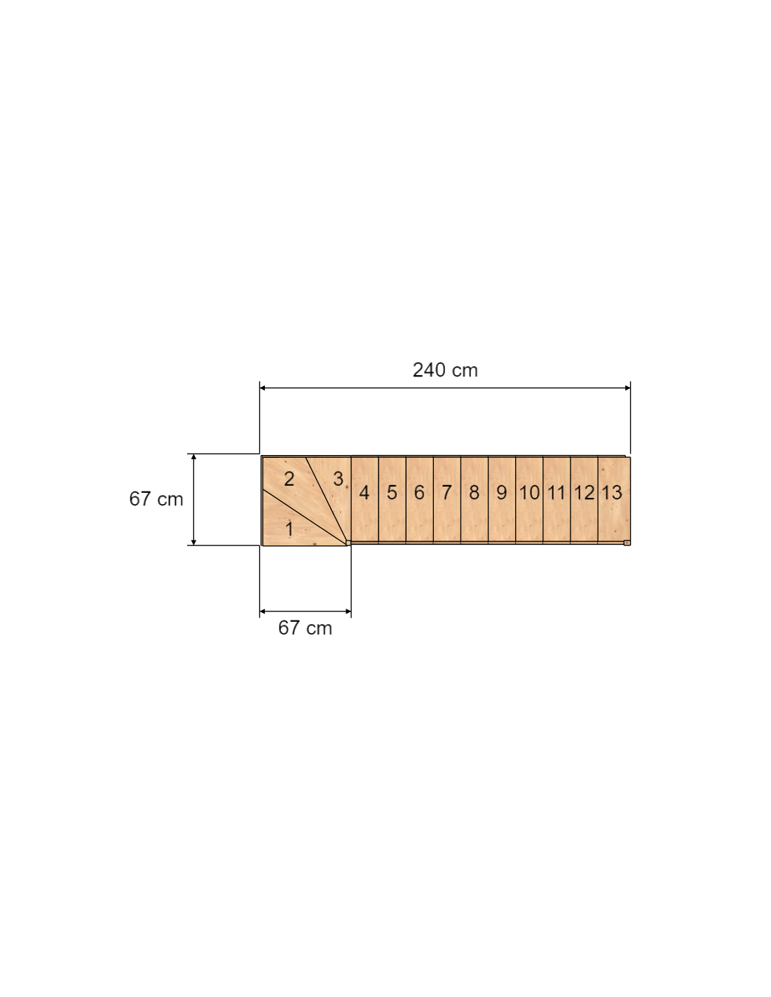 | 2 | Quarto di giro basso (3 gradini + 2 alzate + piedi) | 55 x 13 x 95 cm | 20 kg |