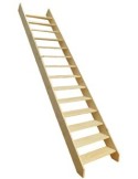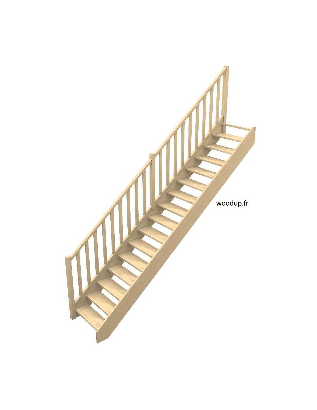 Scala dritta in abete consegnata in kit, tagliabile fino a 285 cm. 15 gradini, larghezza 80 cm (82 cm con ringhiera), sezione 200×28 mm, vano scala consigliato 85×273 cm. Disponibile con o senza alzate e ringhiera. Finitura da applicare dopo la posa.