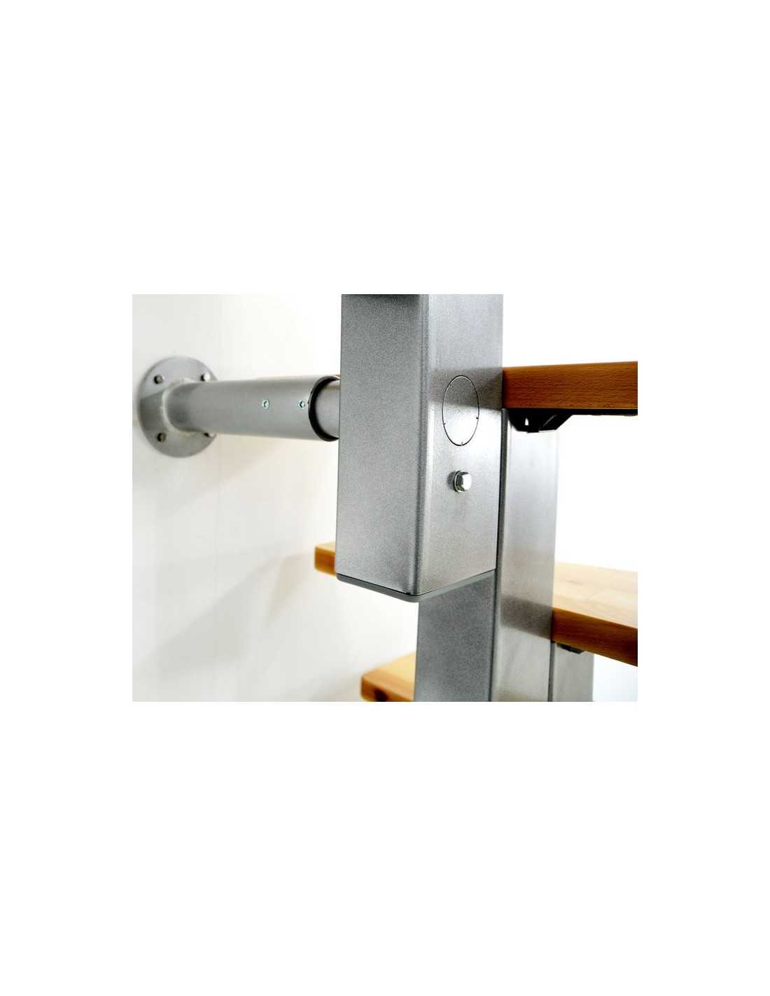 I gradini in legno si puliscono con un panno asciutto o leggermente umido e poi si asciugano. Le parti metalliche si mantengono senza prodotti abrasivi per preservare la finitura. Si raccomanda un controllo periodico dei fissaggi.