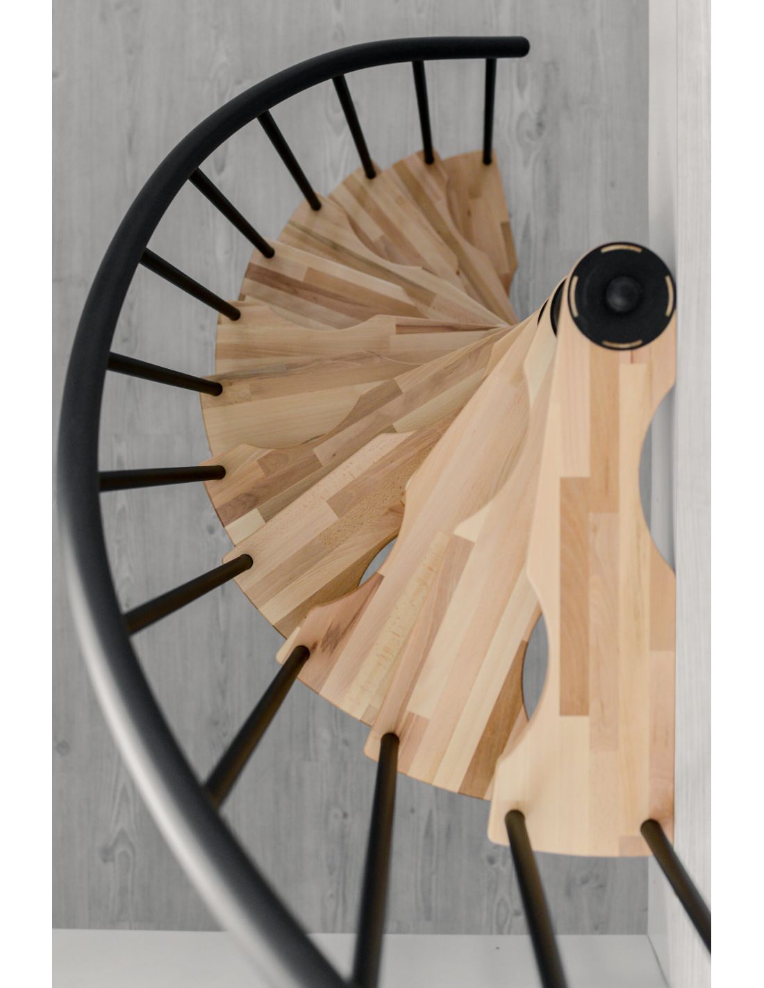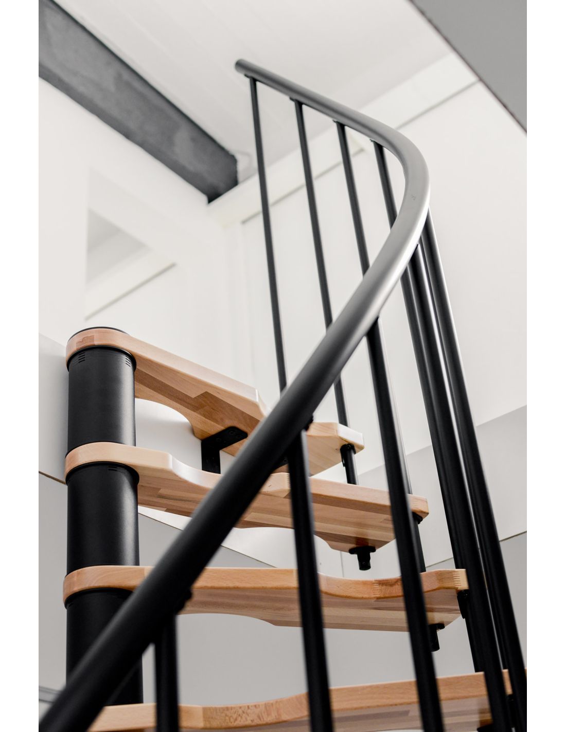 Caratteristiche: è una scala a chiocciola progettata per uso interno quando lo spazio disponibile richiede una soluzione compatta. La sua configurazione a spirale permette di collegare due livelli limitando l'ingombro, rendendola adatta ai progetti di ristrutturazione come alle nuove costruzioni. Le dimensioni, la finitura metallica e alcuni elementi di composizione variano in base alla variante selezionata.