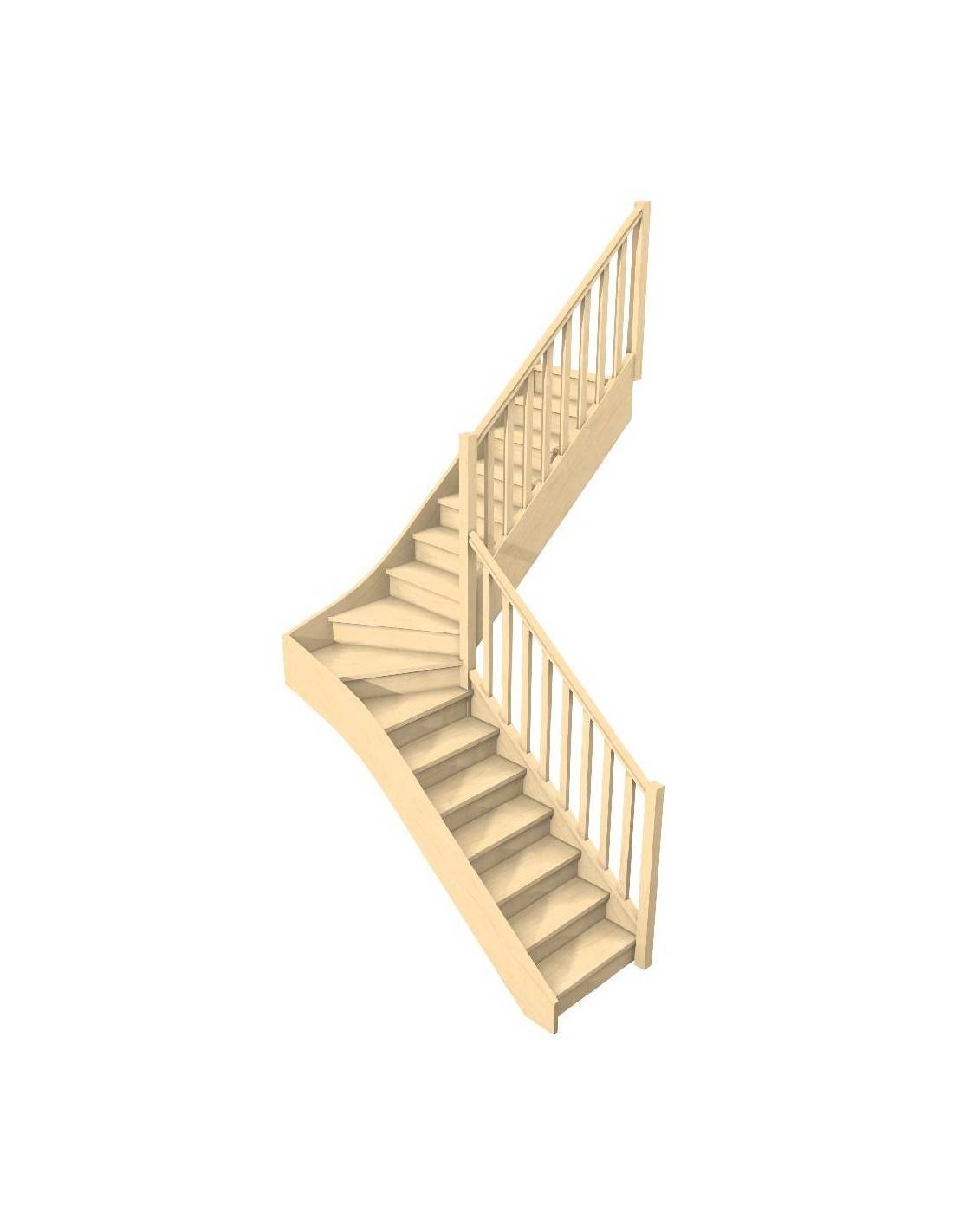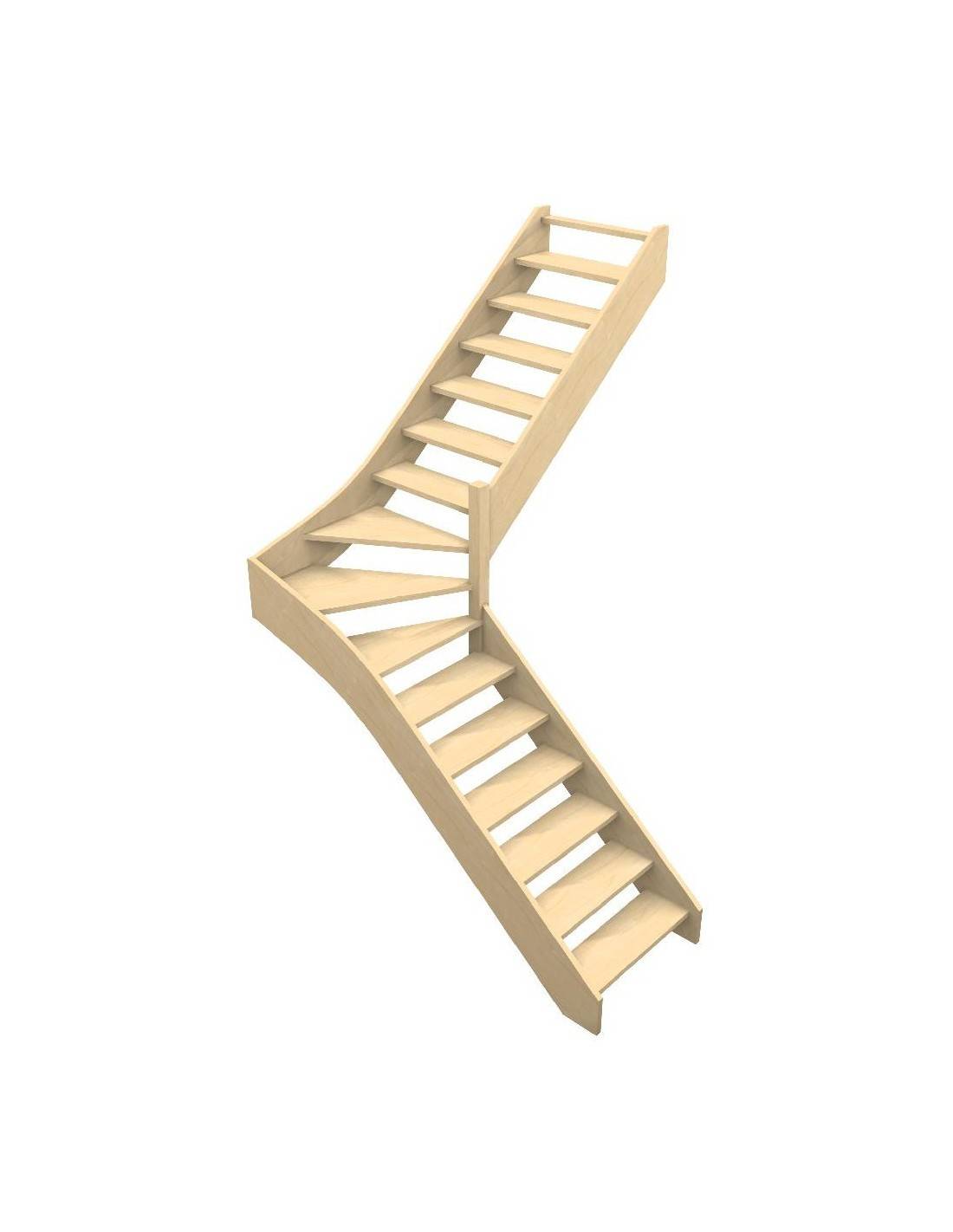 Scala a quarto di giro intermedio in legno su misura.