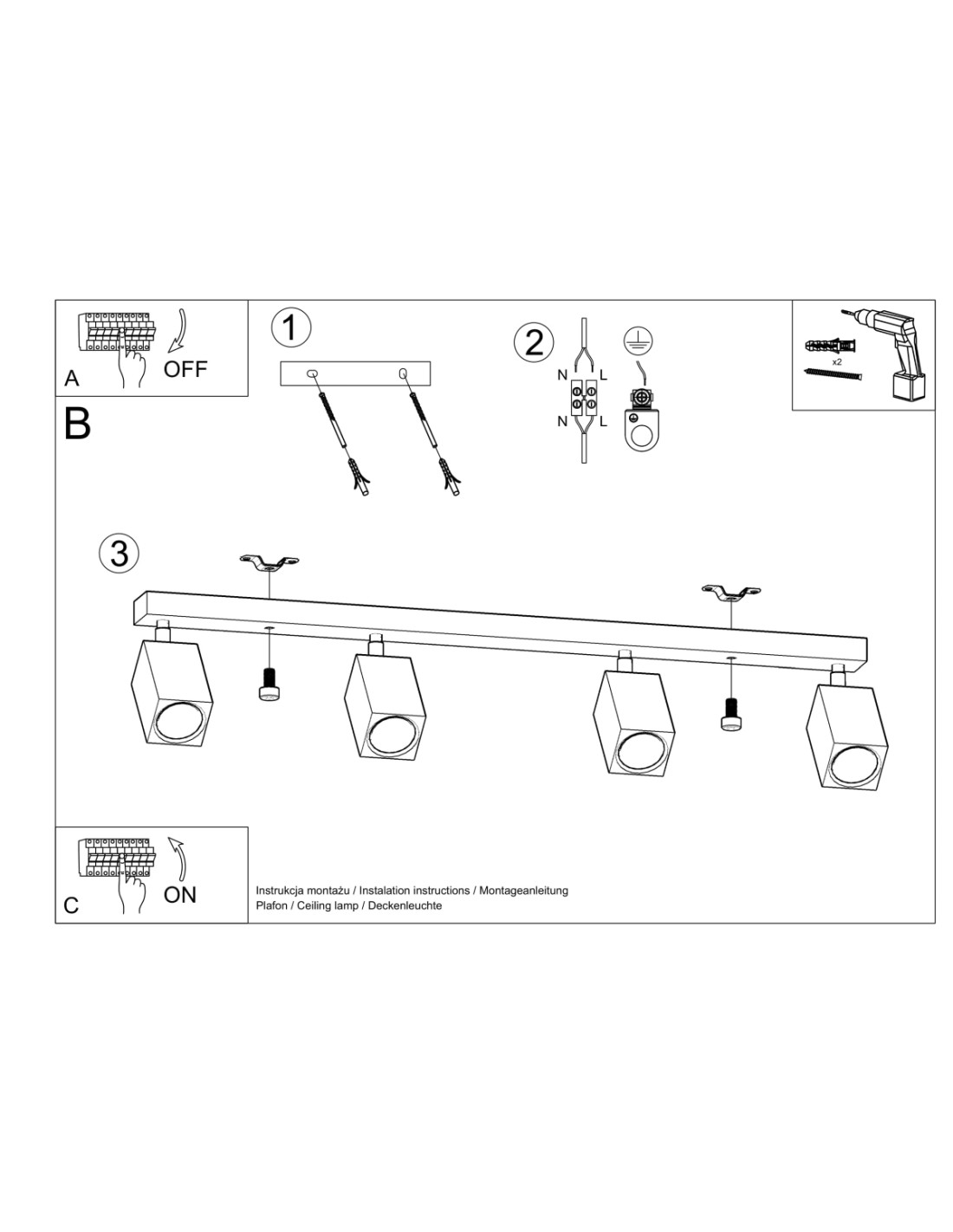 Questo apparecchio è progettato per un illuminazione per interni. Utilizza 4 sorgenti/i con attacco GU10 (lampadina secondo configurazione) per adattare la resa luminosa in base alla lampadina scelta.