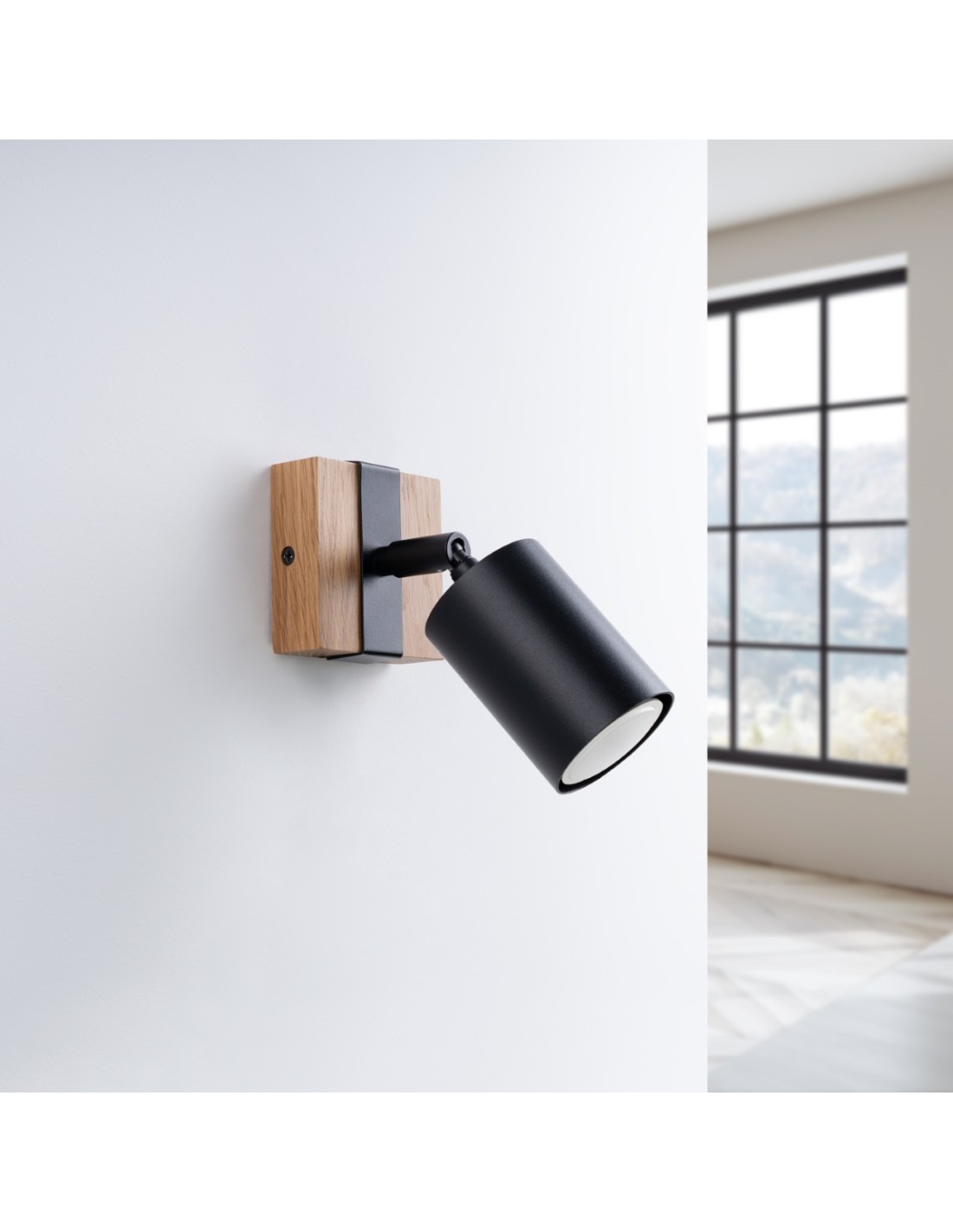 Materiale : acciaio/legno naturale • Forma : tubo • Colore : nero/legno naturale • Dimensioni : 8 × 17 × 13 cm • Classe IP : IP20 • Potenza max : 10 W • Stile : scandinavo • Funzionalità : fascio luminoso regolabile