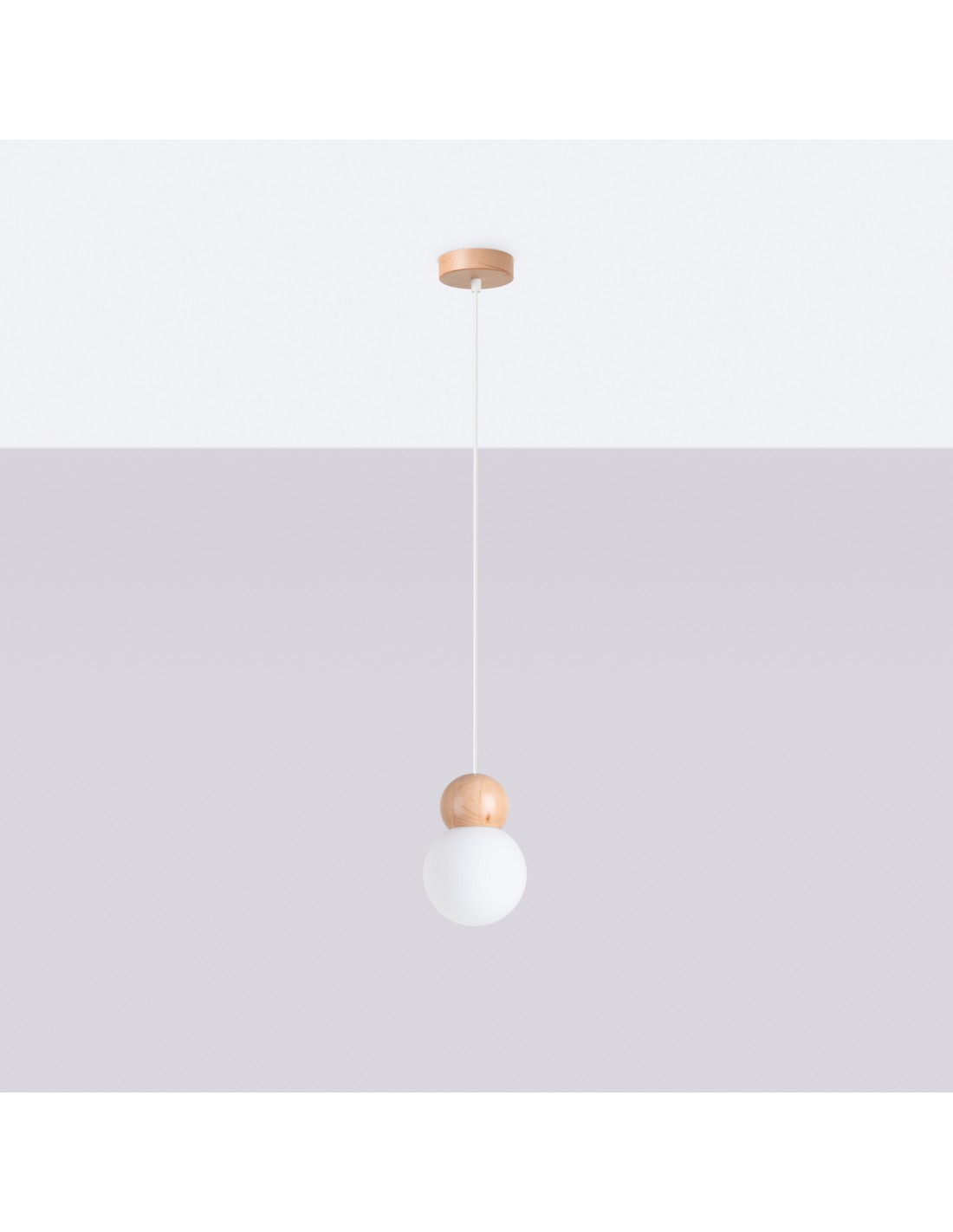 Matériau : verre/bois • Forme : balle • Couleur : blanc/bois naturel • Dimensions : 11 × 11 × 124 cm • Classe IP : IP20 • Puissance max : 8 W • Style : scandinave • Fonctionnalité : réglage de l'élingue